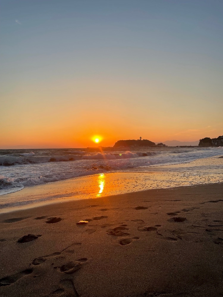 最近私は江ノ島に行くことが多くて鎌倉高校前の駅で降りて砂浜を歩くのですが日の出の時間に歩くのがとても好きなんです!!