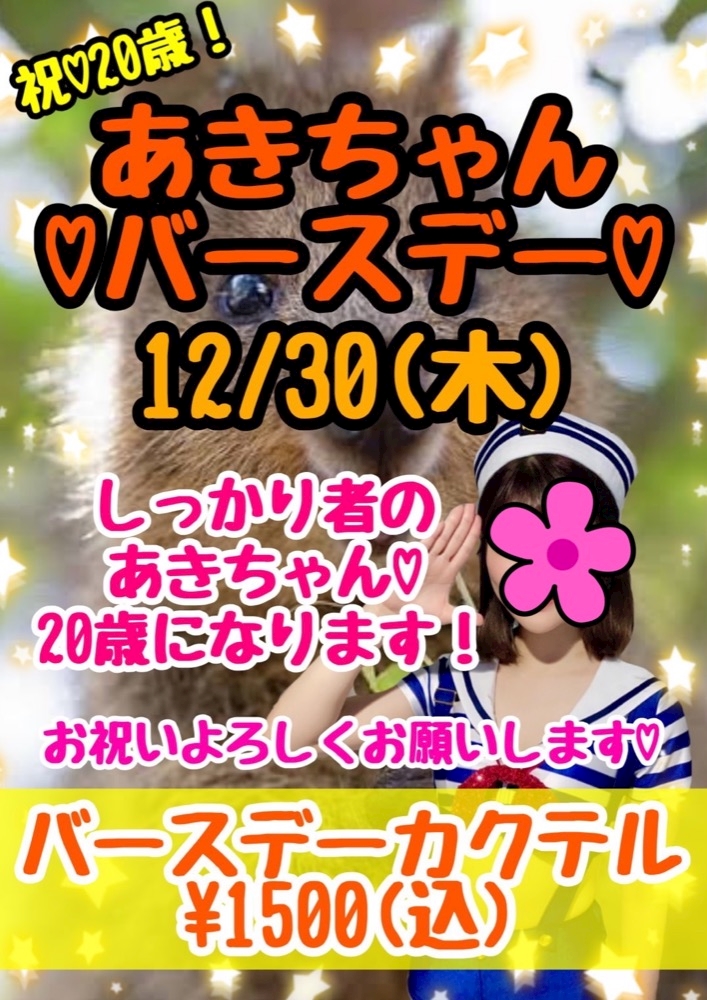 【あきちゃんおめでとう(*´ω`*)】 - まりん艦長@代表取締役(セカンド20歳) - 八王子 ガールズバー・ブルーサブマリン