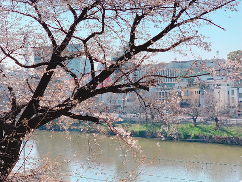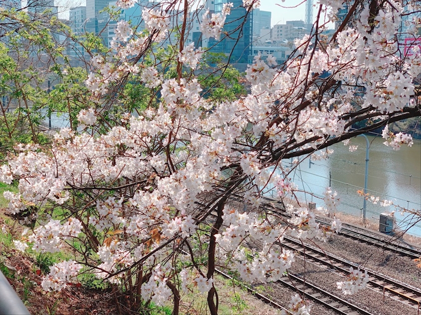 線路、お濠、桜🌸