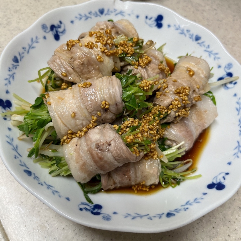 この前、豆苗ともやしの豚肉巻き作りました🐷🥩