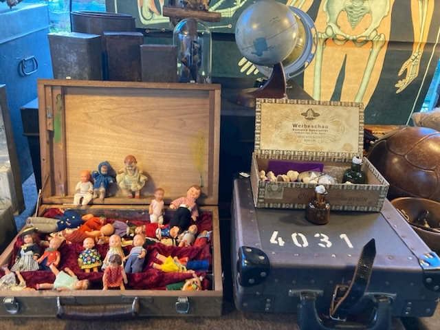 (アンティークの人形。腕がなかったり、割れてるガラス製も割と高めのお値段…)