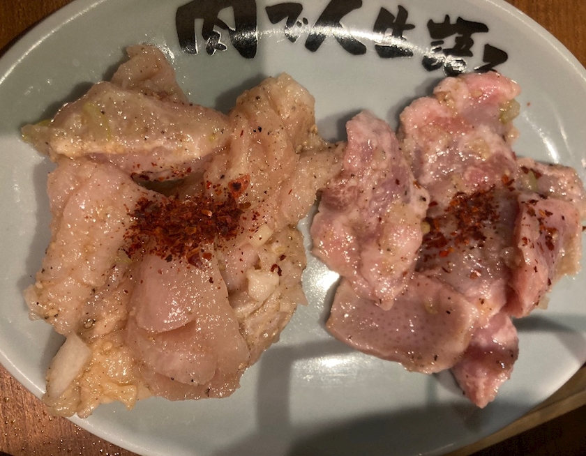 写真は、焼肉「ここから」のホルモン系のお肉だよん😋