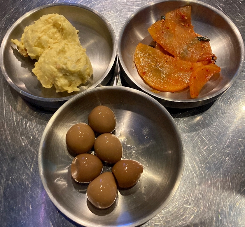 写真は、「ホンデポチャ」っていう韓国料理屋さんのお通しだよ😆