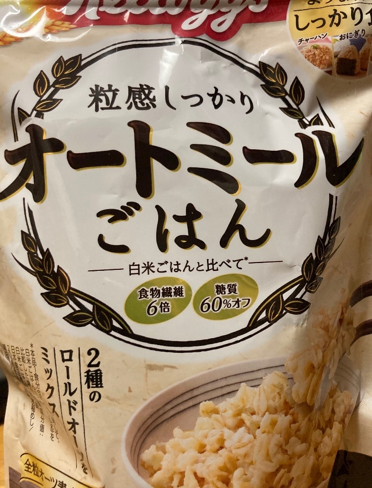 オートミールの袋片手に