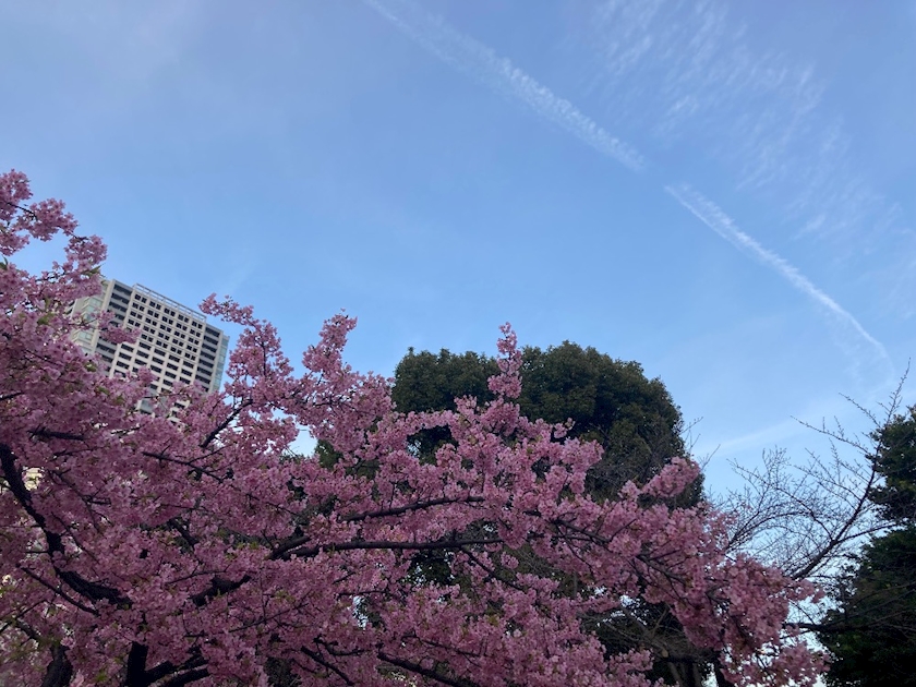 写真は、梅見てたら突如現れたひこうき雲だよ✈️