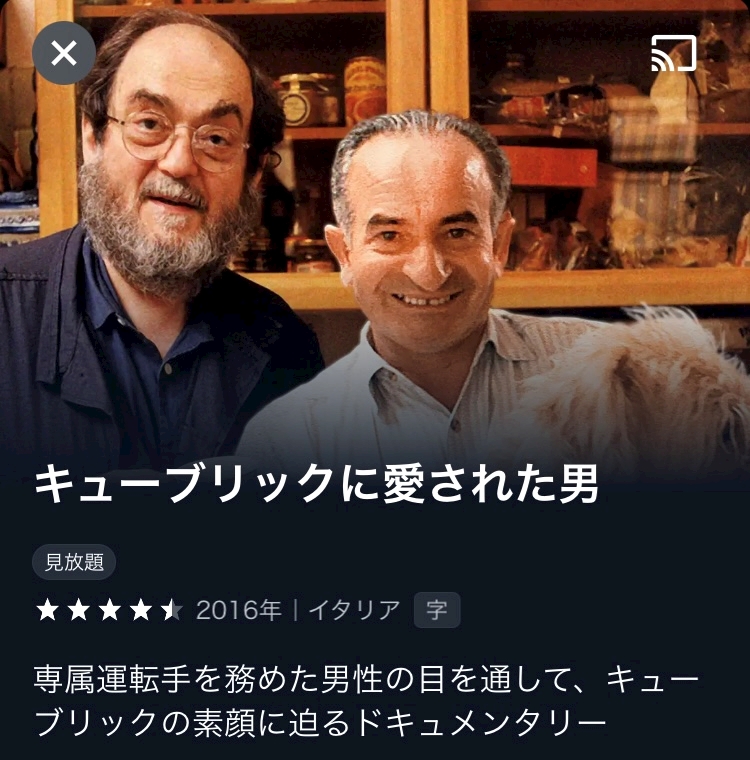 Uちゃんの大好きなスタンリーキューブリックに愛された方のドキュメンタリーね