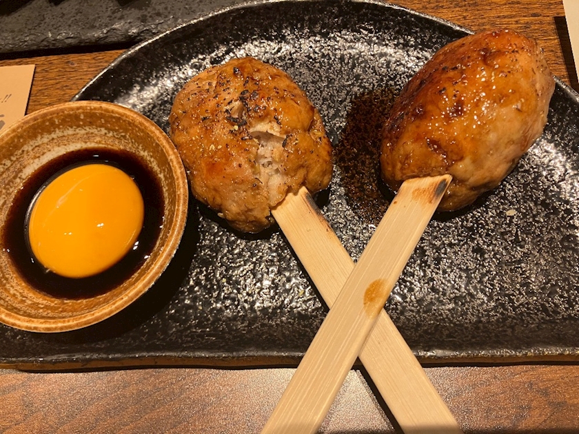 上野にある「わら焼き屋」っていうお店で月見つくね食べたよ〜