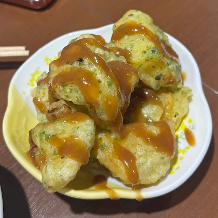 青のりを含む衣で包んで揚げて