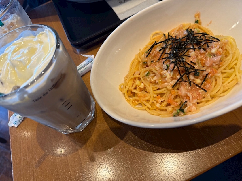 タリーズのたらこパスタ食べて