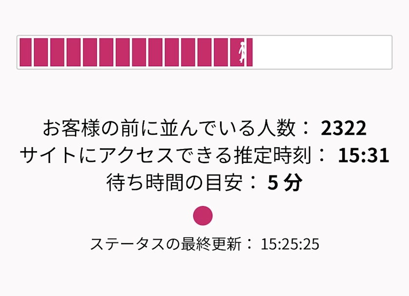 応募のページに入れるまで15分待ちました😀