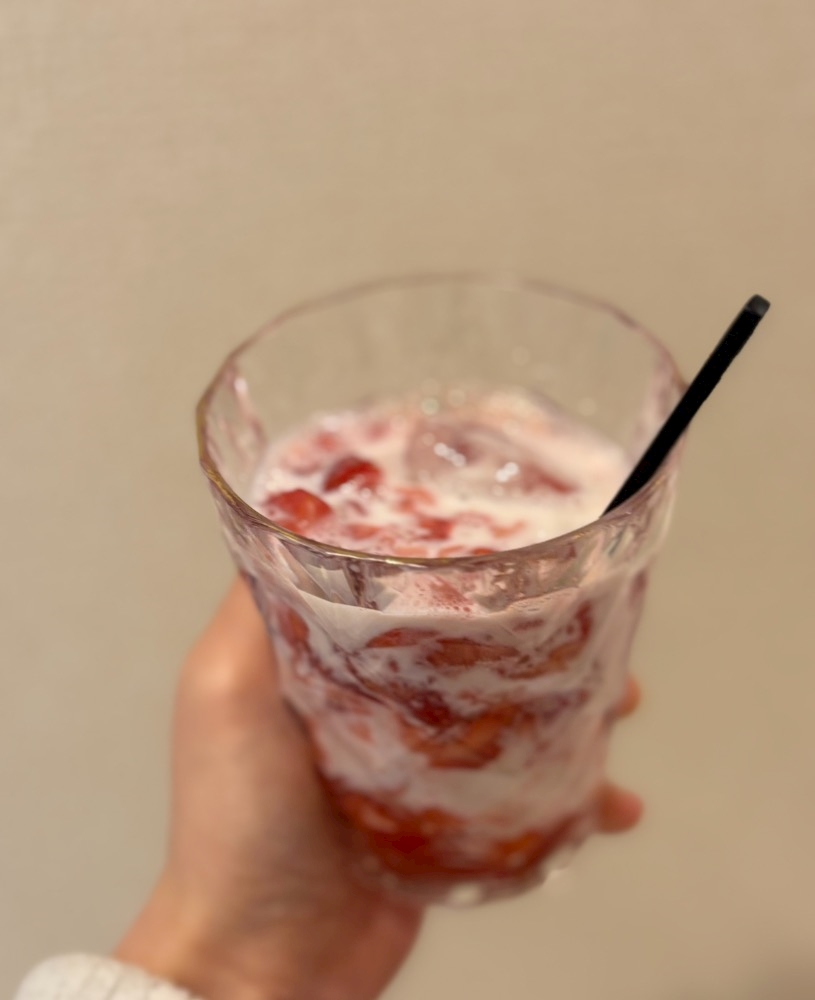 朝から行ってもいちごミルク飲んだっ🍓