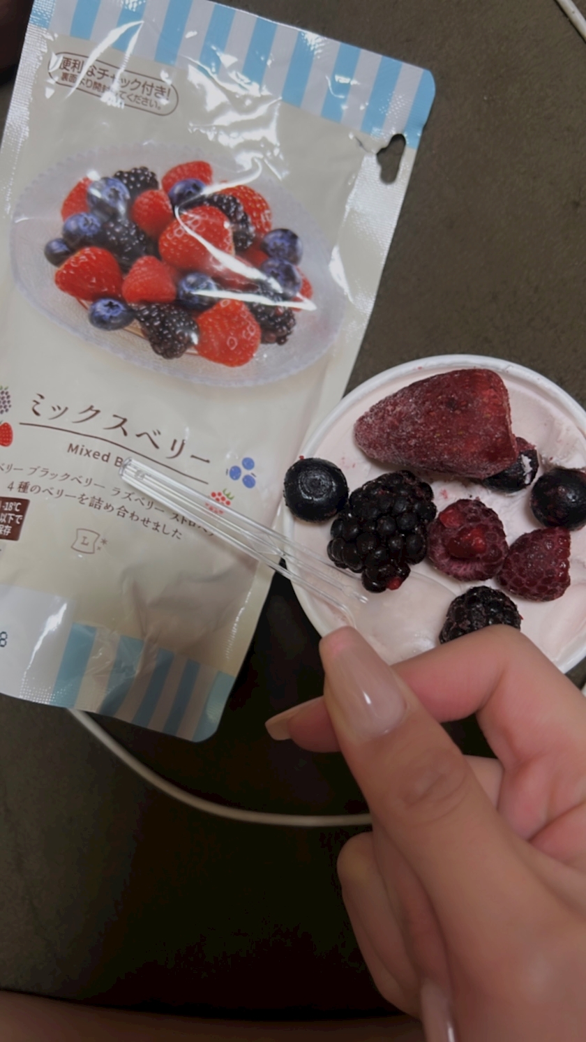 ミックスベリーも買って上に乗っけました🤤♥️
