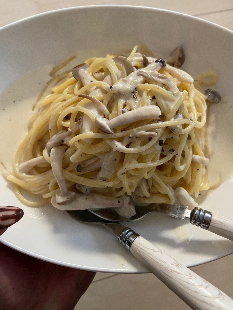しめじのチーズクリームパスタにした笑