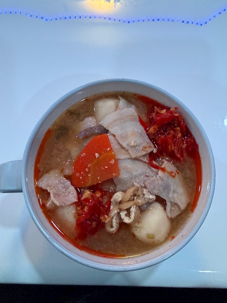 お店で作ってもらった豚汁にめっちゃ辛い調味料みたいな