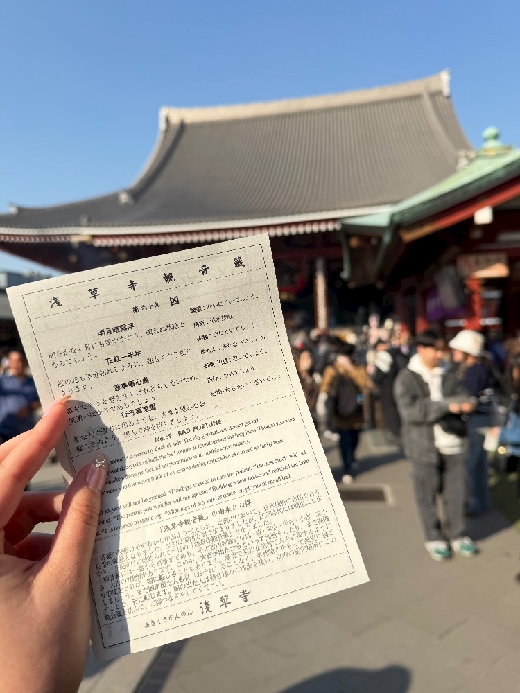 浅草寺でひいたおみくじは凶でした🥹
