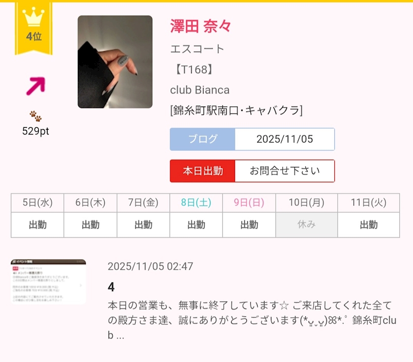 5 - 澤田 奈々 - club Bianca・ビアンカ - 錦糸町駅南口のキャバクラ