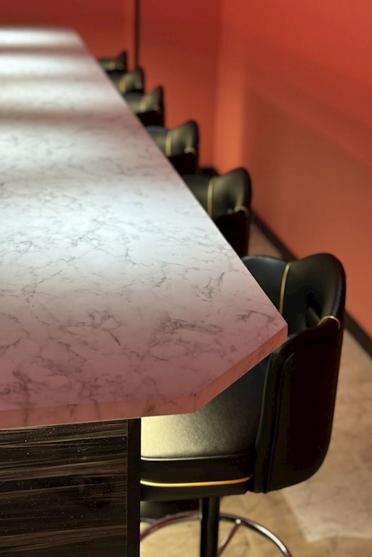 店内はピンク系をベースにしていてとってもオシャレ、上品な色味だから可愛すぎずオトナの男性でも落ち着いて飲めるセレブリティな雰囲気。おひとり様でもお仲間たちとでもご利用いただきやすいように、カウンター席はたっぷり12席ご用意しました。