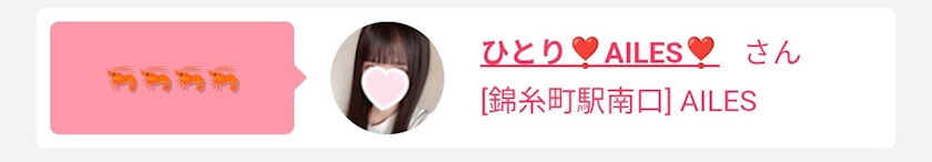 🦐錦糸町 南口AILES🦐ひとり❣️AILES❣️さん🦐