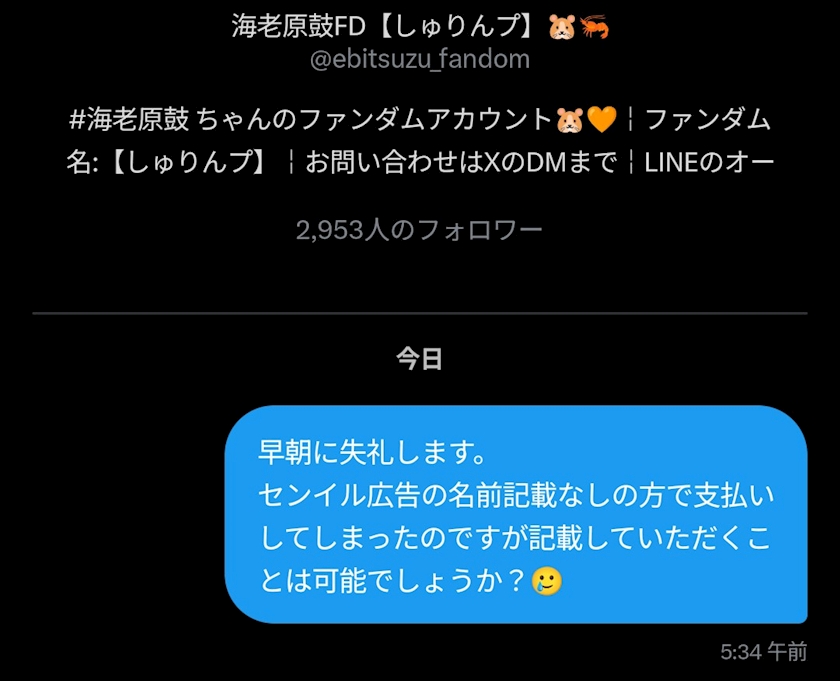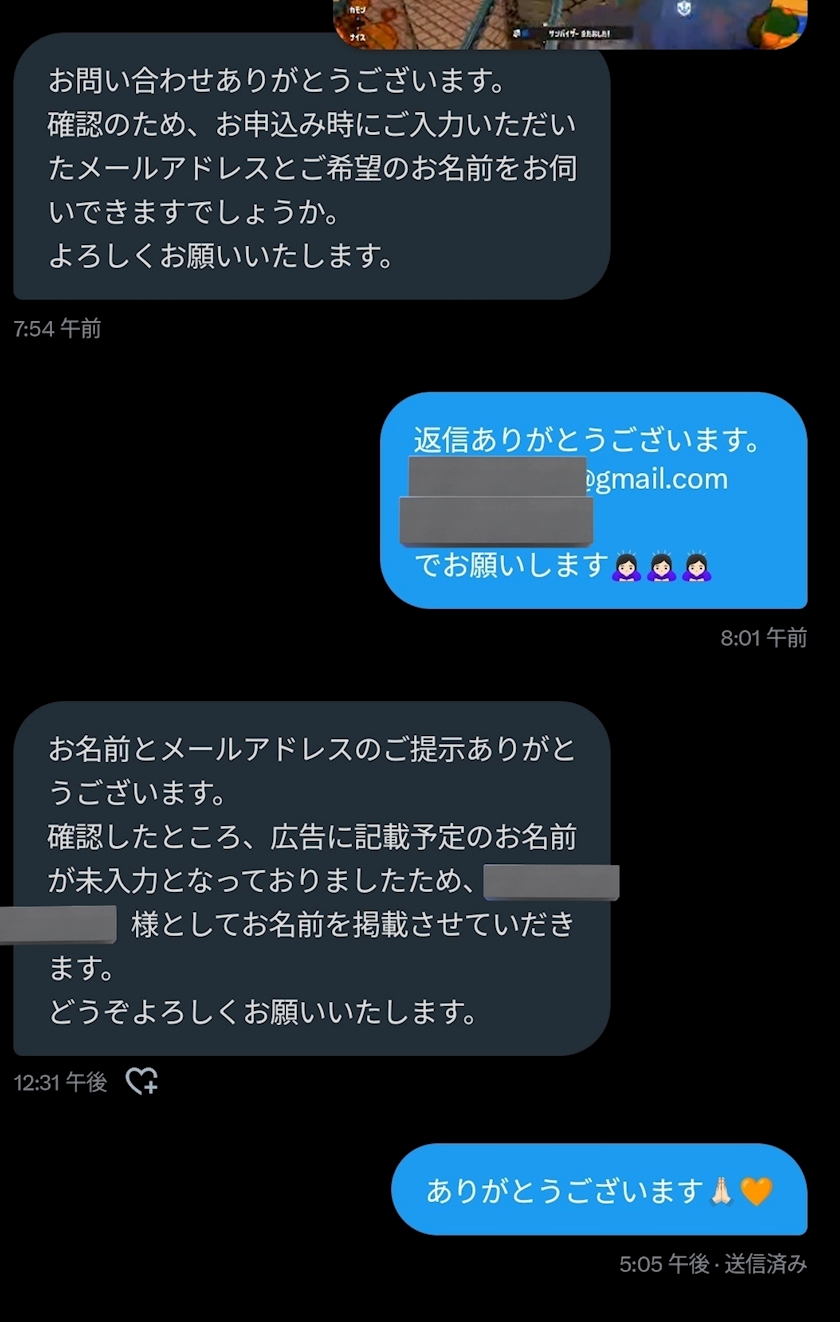 DMで連絡したら