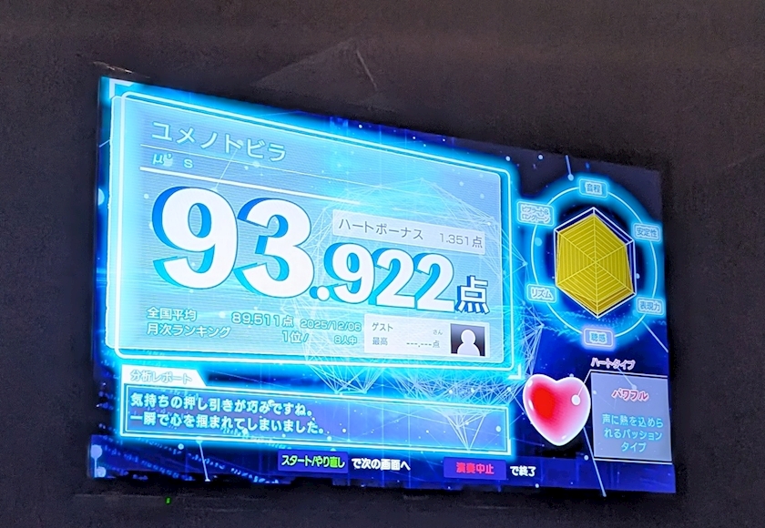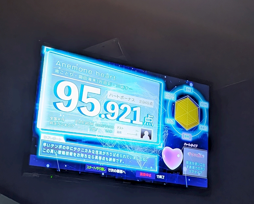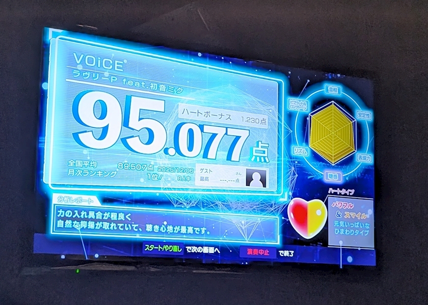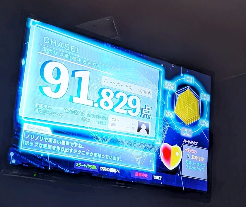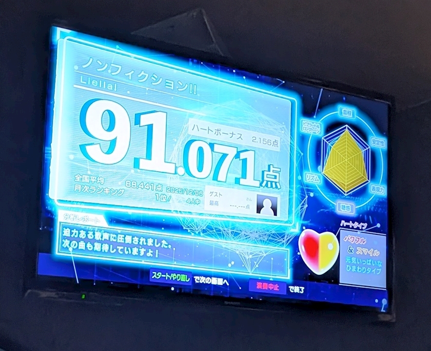 お店のカラオケの画面