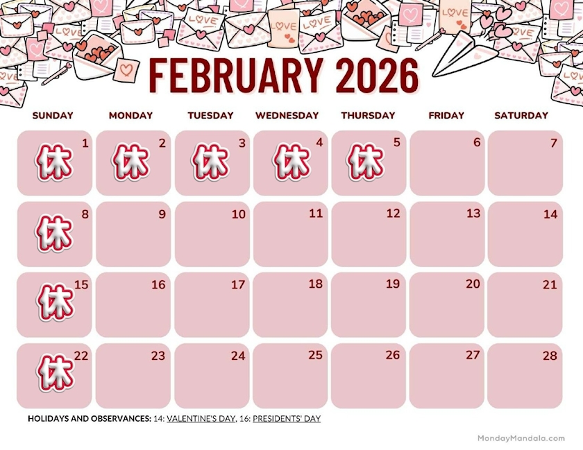 2月のお休み