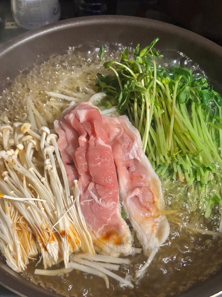 豆苗ともやしの鍋作ってみました、ダイエット中でマンジャロ打っているせいか、鬱がなかなか抜けません、頑張って出勤するぞ!強い女は挫けない女らしい、挫けません……🥲