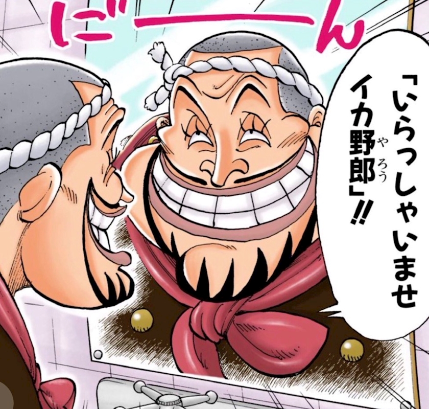 海上レストランバラティエのコック。「イカ野郎」が口癖の乱暴もの。いかつい見た目だが、デザートが得意。海中レストランの「バラティエ-連結式デザート艦”シスターアンコー”」を任されている。