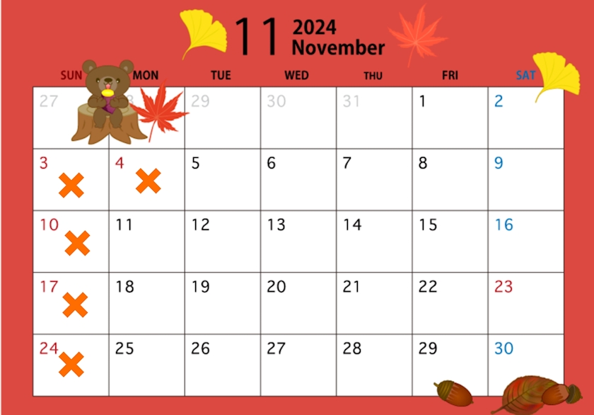 11/4月 お休み