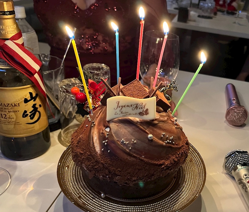 からの、クリスマスケーキ🎂と結🍷