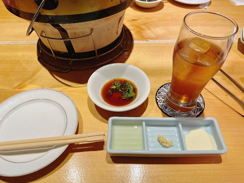 ちょっと見切れてるけど七輪で自分で焼くスタイルで