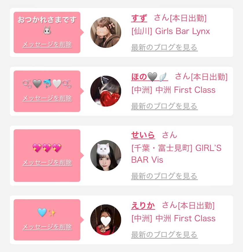 みほさん、ここあさん、えりかさん、しおりさん