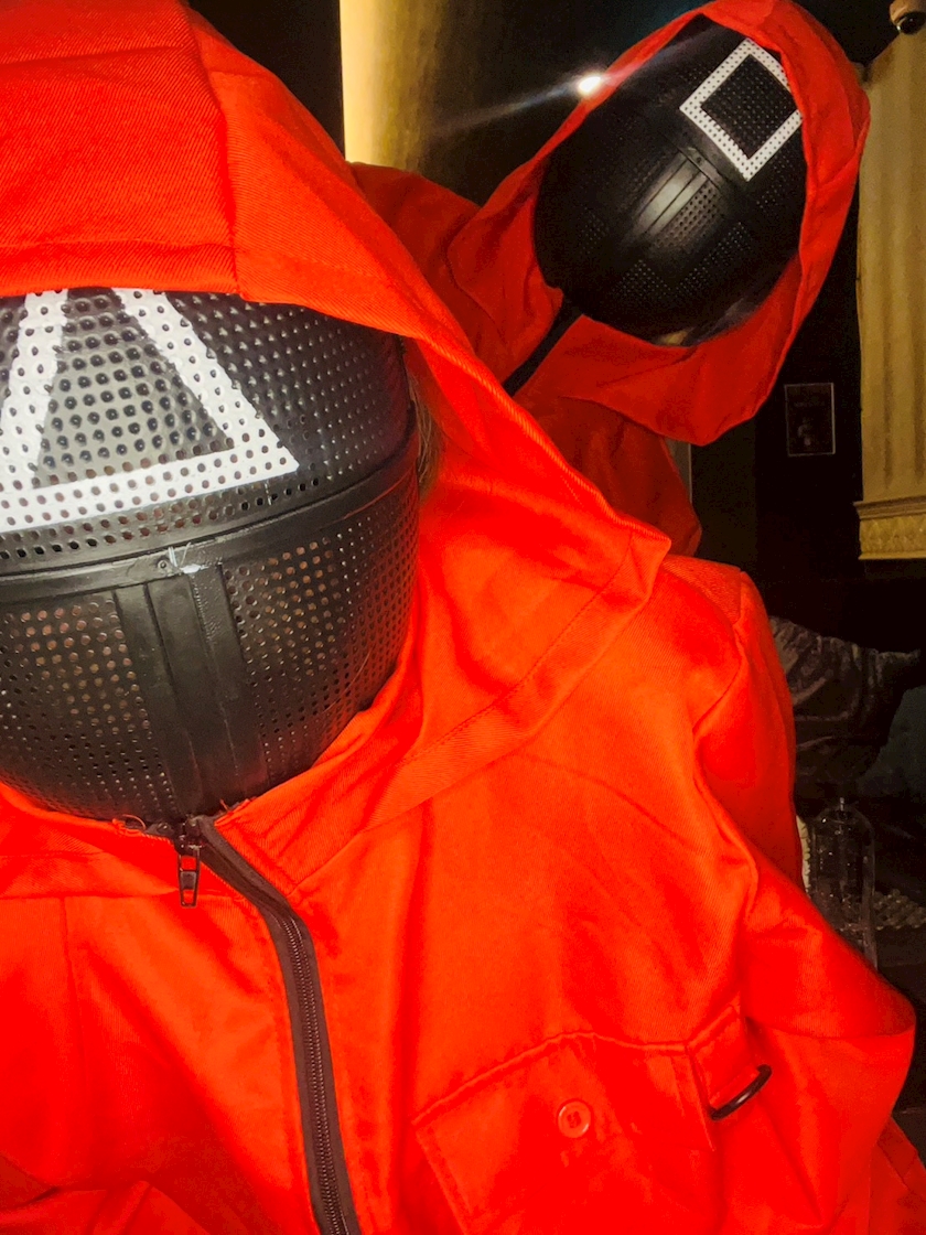 はたから見たらイカゲーム仮装2人に