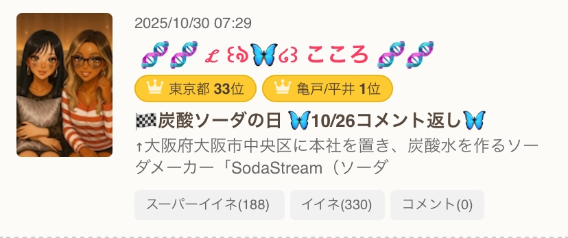 - 🏁炭酸ソーダの日 🦋10/26コメント返し🦋