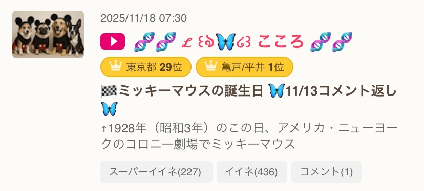 🏁ミッキーマウスの誕生日 🦋11/13コメント返し🦋