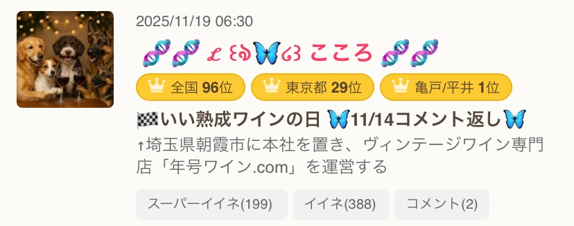 🏁いい熟成ワインの日 🦋11/14コメント返し🦋