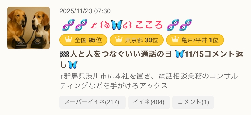 - 🏁人と人をつなぐいい通話の日 🦋11/15コメント返し🦋