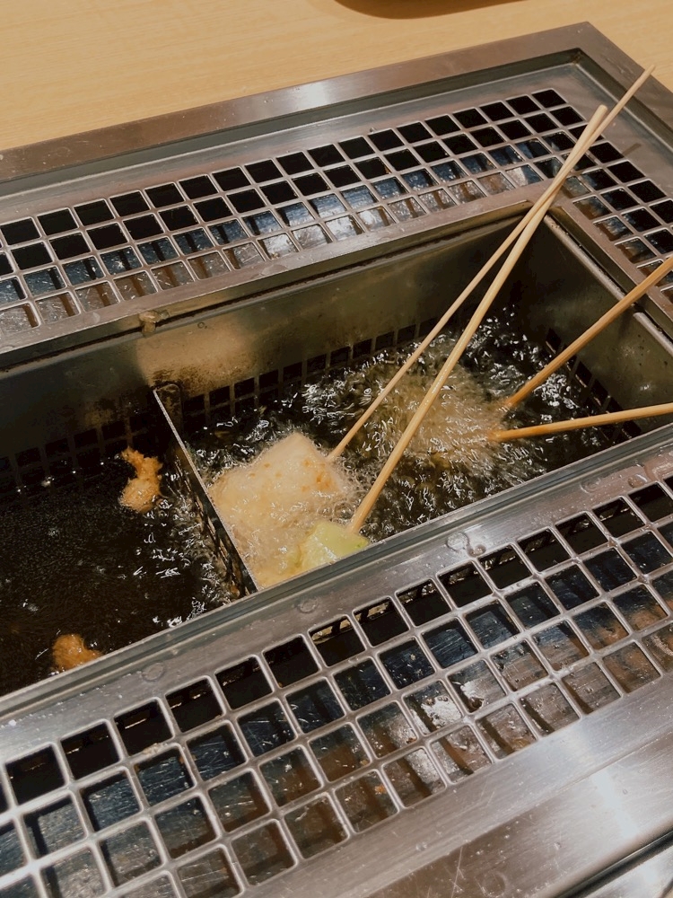 自分たちで串を揚げて食べる