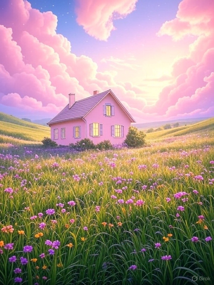 原っぱに家がぽつんとある系の画像をお願いしたら、、、