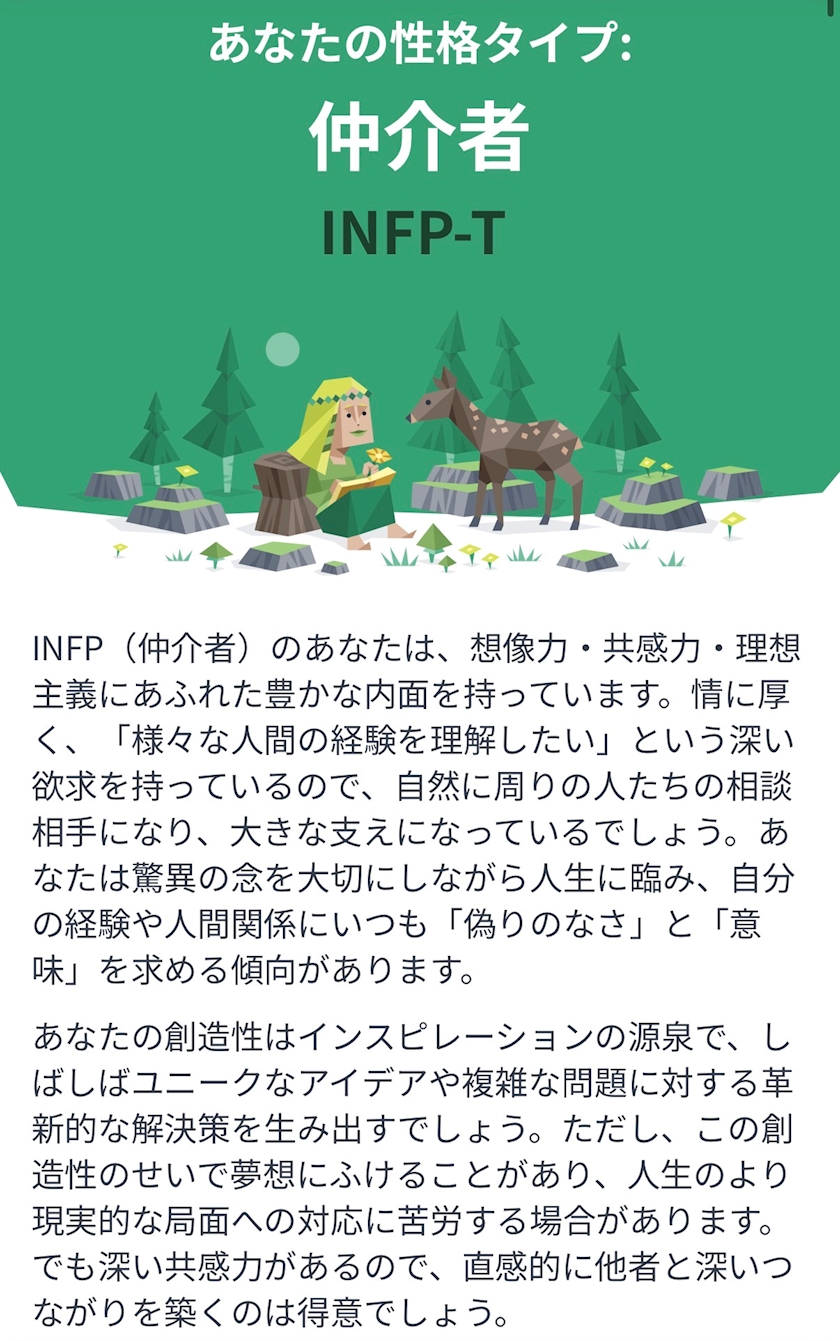 やってみたけどずっとINFPだから