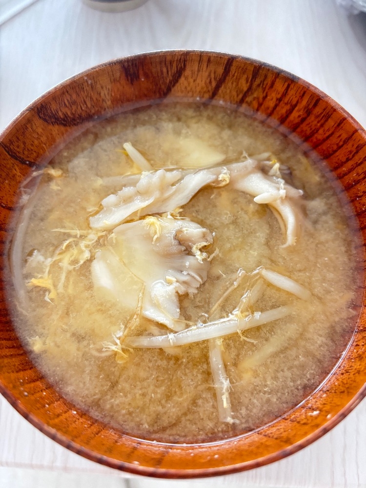舞茸ともやしとたまごの味噌汁