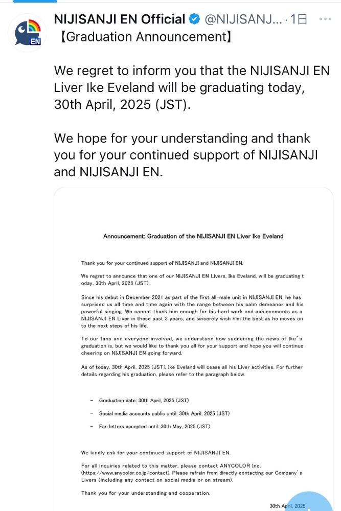 にじさんじを卒業