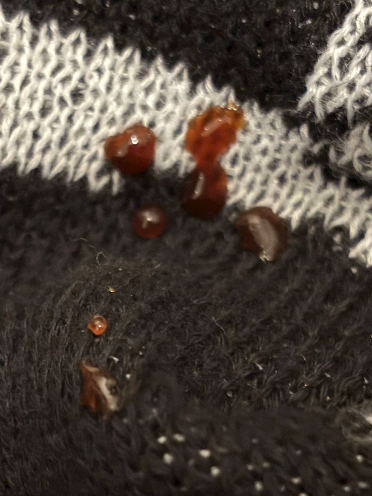 服にこぼした。きもすぎ