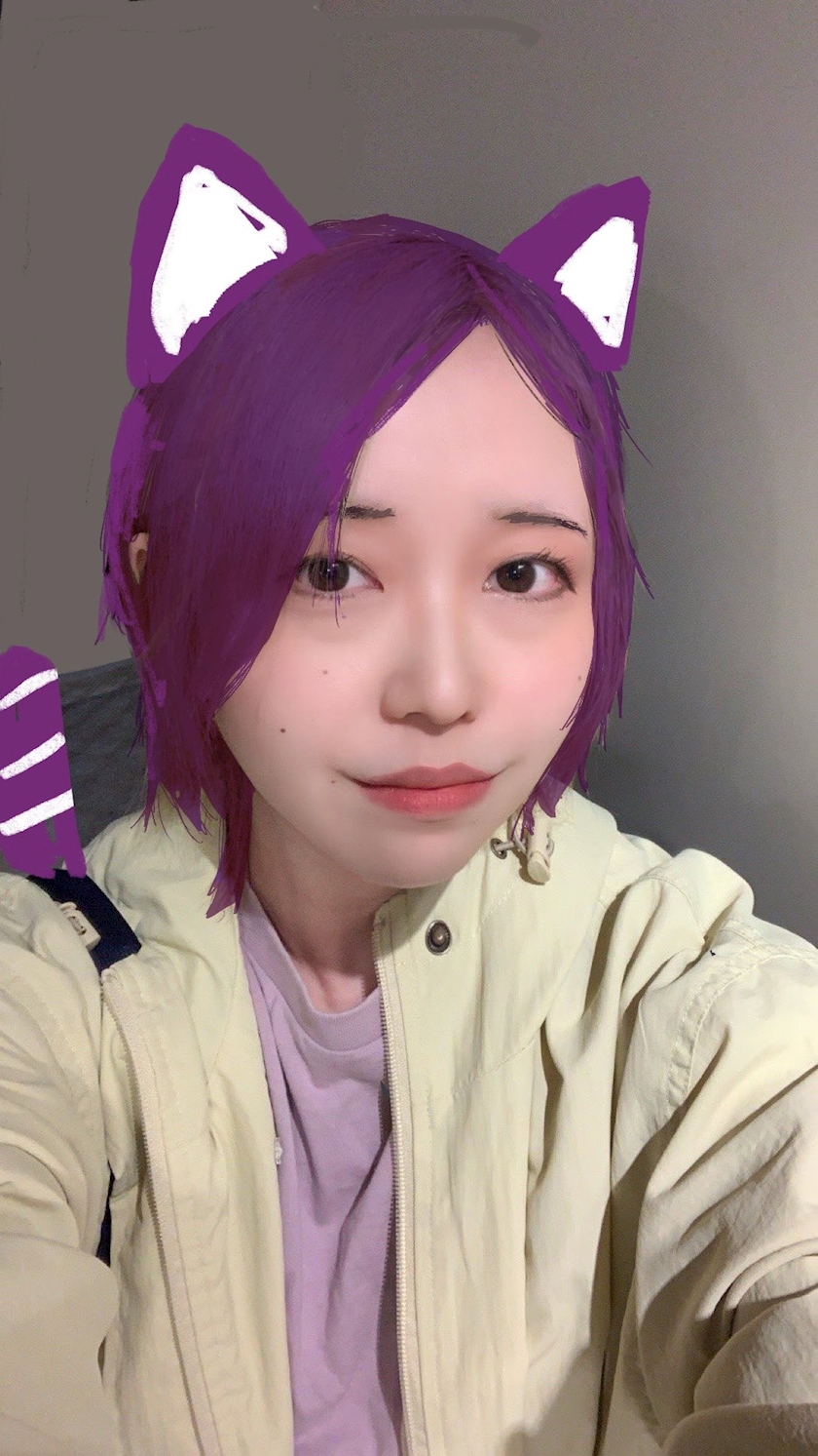 髪の毛は紫色でした