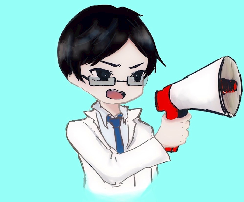 拡声器持った男性医師