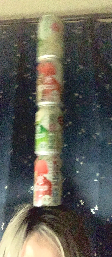 ・頭の上に缶を積む