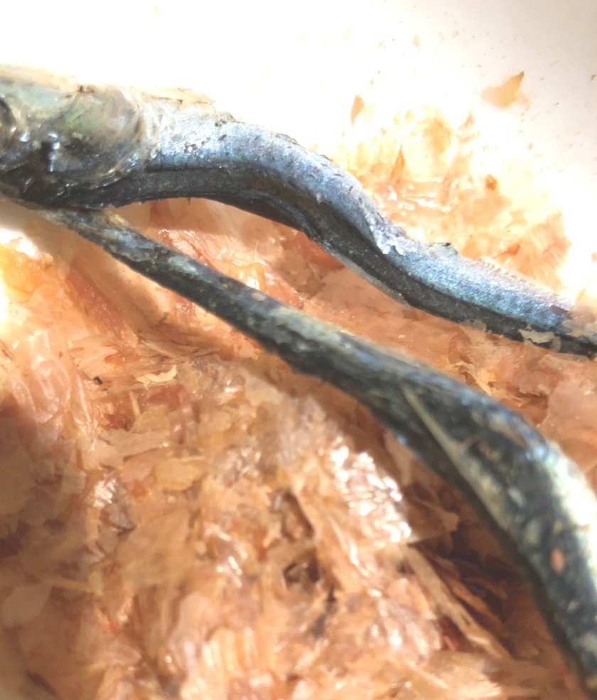 ちょうど食べていた煮干しがあったから