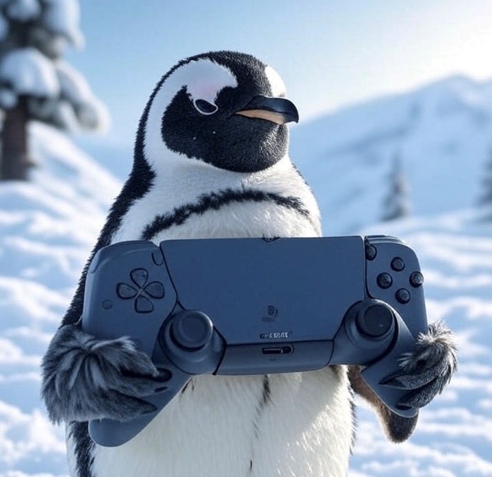 【ペンギンがゲームをしている画像】
