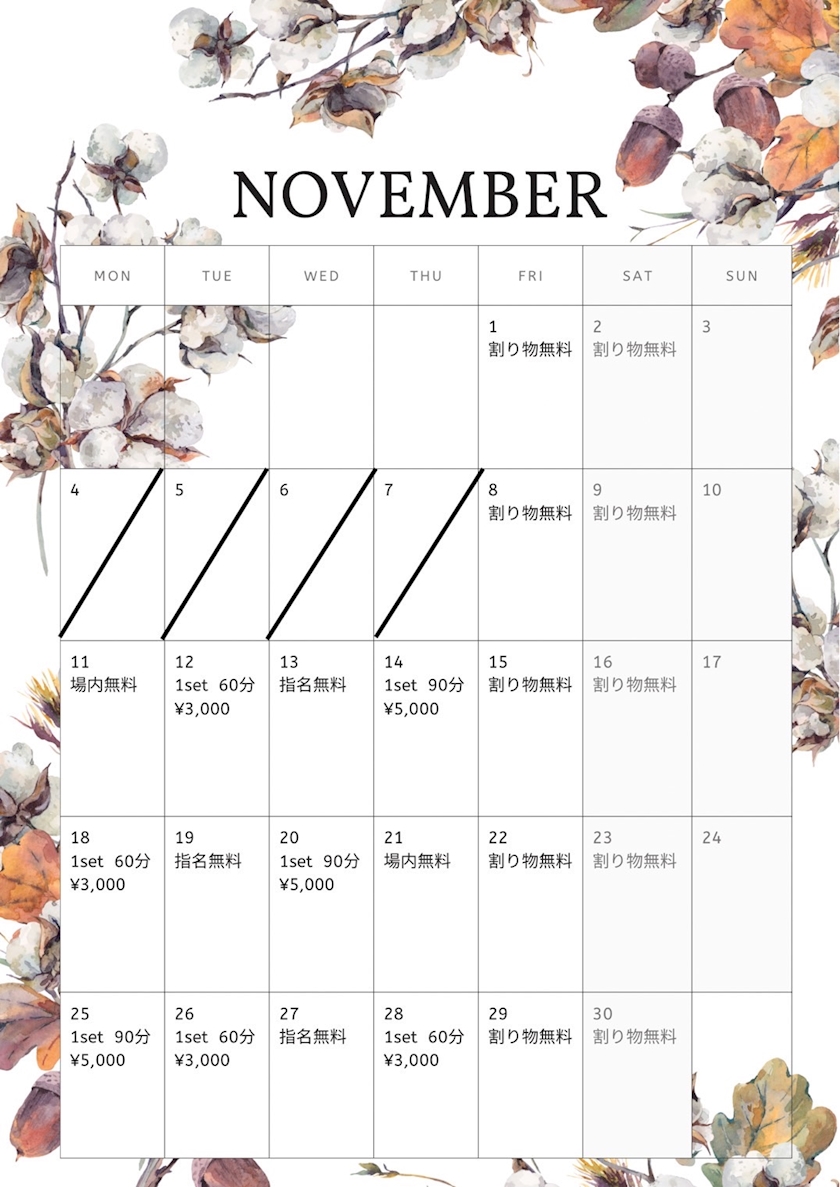てことで、11月のカレンダーイベント🗓️