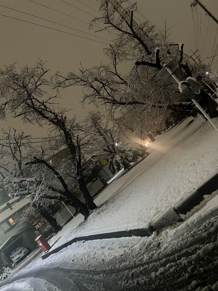 雪のせいで電車止まって🚃