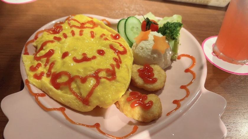 オムライスに大好きなポメラニアンもち描いてもらった🎀